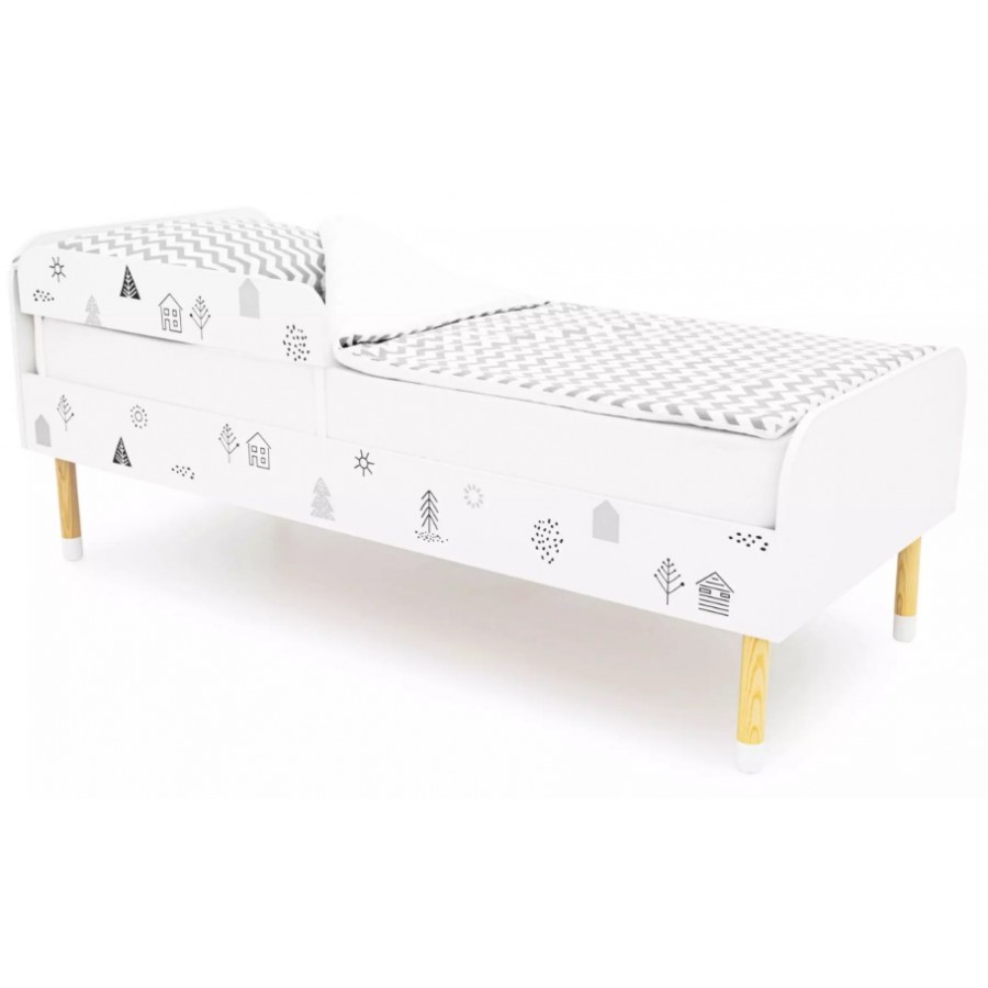 Кровать выполнена в лаконичном скандинавском стиле, который очень популярен сейчас в интерьере. Милые рисунки оживят кроватку и подойдут к любой цветовой гамме в детской комнате.