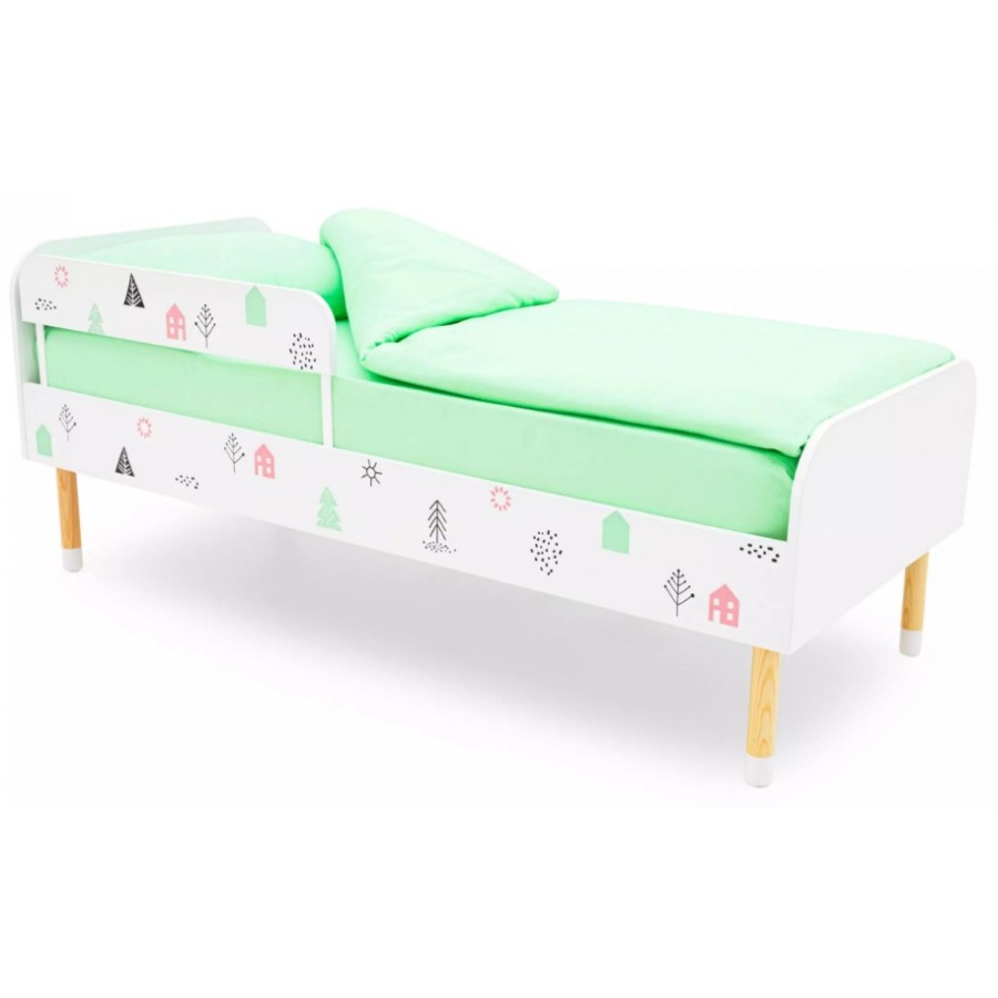 Кровать выполнена в лаконичном скандинавском стиле, который очень популярен сейчас в интерьере. Милые рисунки оживят кроватку и подойдут к любой цветовой гамме в детской комнате.