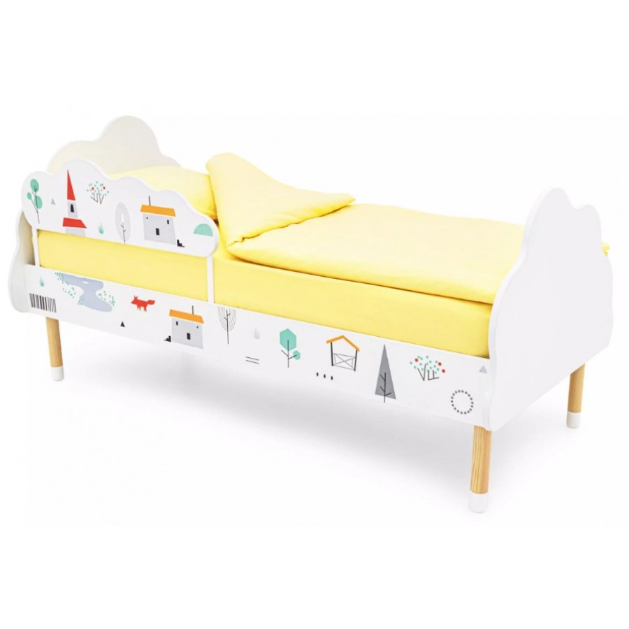 Кровать выполнена в лаконичном скандинавском стиле, который очень популярен сейчас в интерьере. Милые рисунки оживят кроватку и подойдут к любой цветовой гамме в детской комнате.